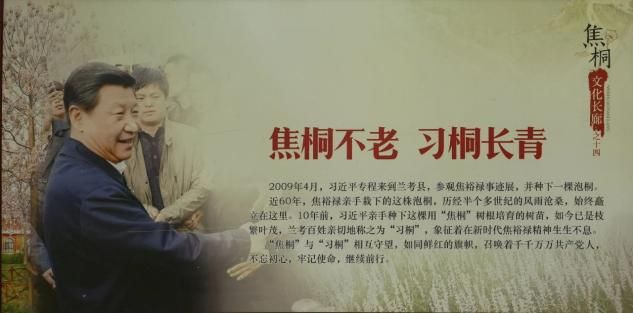 在焦桐廣場(chǎng),焦裕祿同志當(dāng)年親手栽下的一棵幼桐,如今直入云霄,枝繁葉茂,大家凝神仰望,駐足沉思。隨后,黨員們又來(lái)到離“焦桐”不遠(yuǎn)的“習(xí)桐”下,參觀習(xí)近平總書(shū)記在2009年考察蘭考時(shí)栽下的泡桐樹(shù),虔心體味“焦桐不朽,習(xí)桐長(zhǎng)青”的時(shí)代意義。